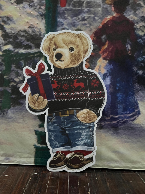 A stylish,  Ralph Lauren Inspired Christmas fashion-themed bear illustration featuring a well-dressed teddy bear character in layered apparel.  This high-quality cutout is perfect for your events. Whether you’re crafting, decorating, or creating gifts, this cute bear design adds personality and charm to anything you use it for.